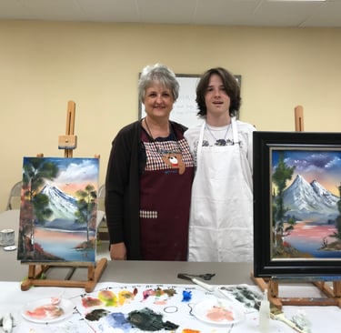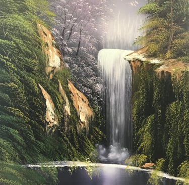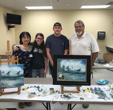 美式休閒油畫是美國自然主義大師鮑伯. 魯斯Bob Ross發展出獨有的快速繪畫的方法。他運用了[濕上加濕](Wet on Wet)的油畫技巧,有別於傳統油畫,不用花費長時間等待顏料完全乾後才能繼續作畫。
