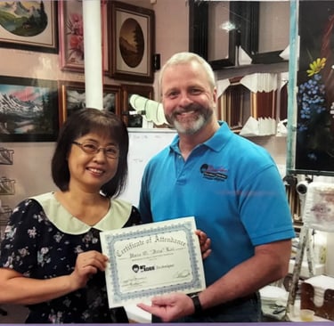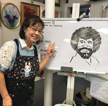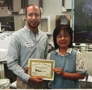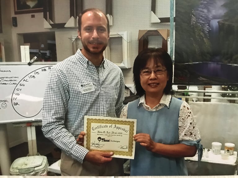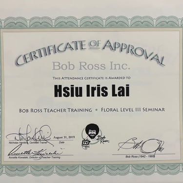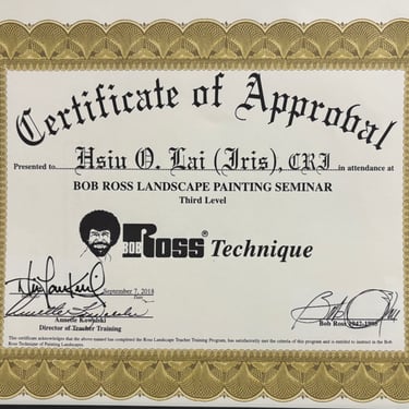 在美國的連鎖藝品店Hobby Lobby 教授美式休閒油畫;有Bob Ross公司CRI(風景),CRFI(花卉)師資認證。